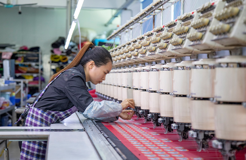 100多台专业设备,瑞士及意大利引进的电脑织唛机30台,日本引进的电脑绣花机38台,15000+㎡大型生产基地,350余名员工,30000+打样制版经验,日产量3000000+个,轻松应对各种加工及交期要求。