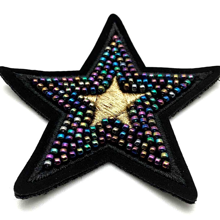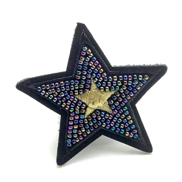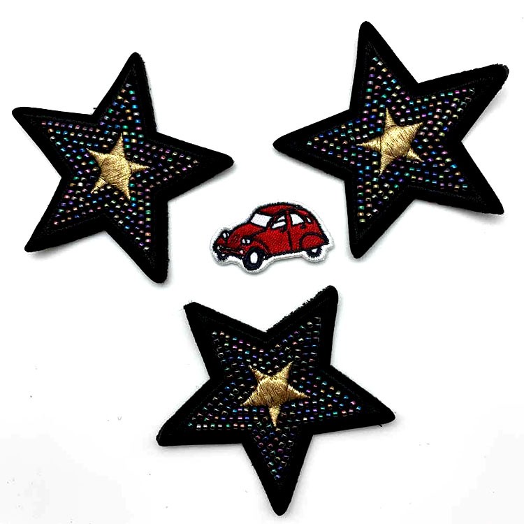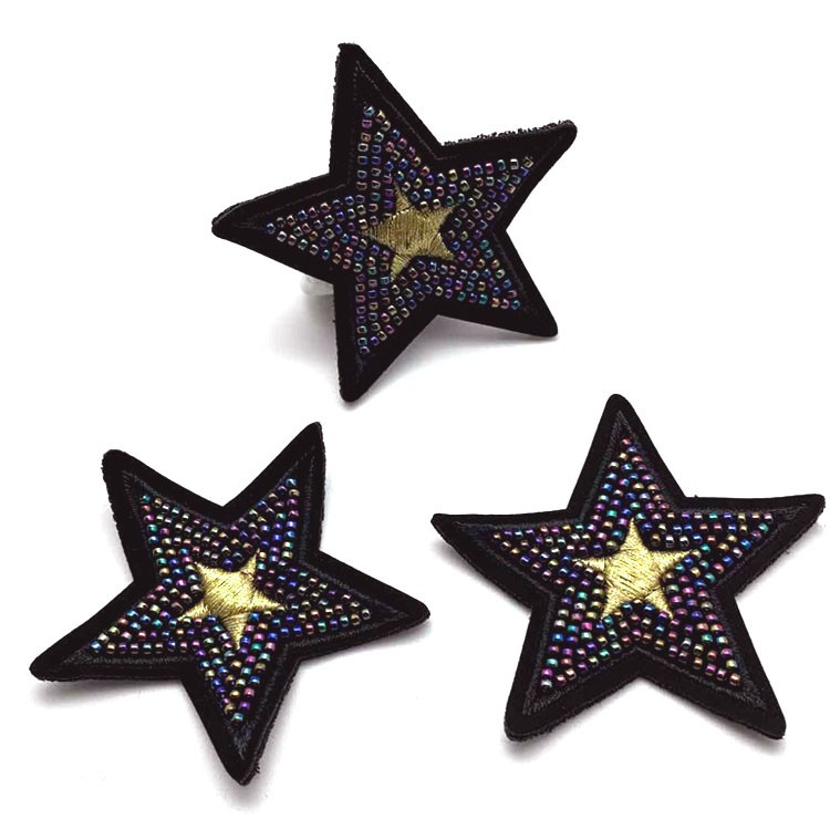 东莞厂家批发定做新款星形钉珠绣彩色珠片定制服装包包装饰贴牌