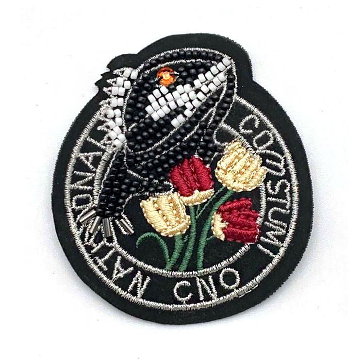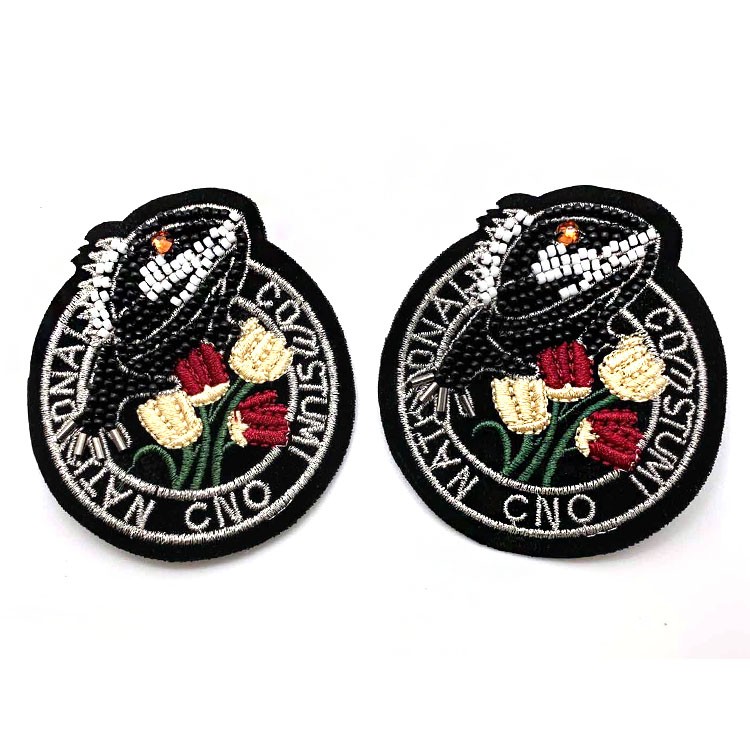 厂家批发新款卡通钉珠绣布贴可来图设计 珠绣徽章服装箱包绣花章