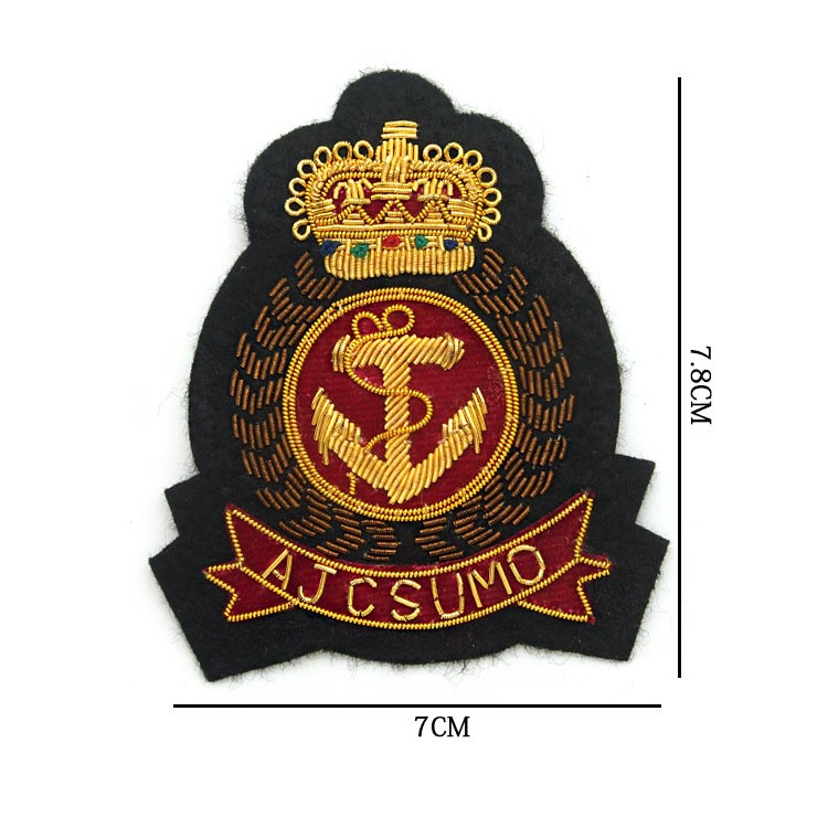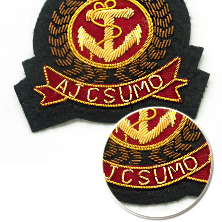 印度丝绣花章,早起源于印度,故又称印度丝徽章、铜丝徽章、弹簧丝徽章、印度绣花章、金属刺绣章等,采用印度特有的金属线为主要材料,并用传统的手工艺绣花,一针一线刺绣而成。其手工精细,令人叹为观止,绣出来的产品高档华丽,层次分明。